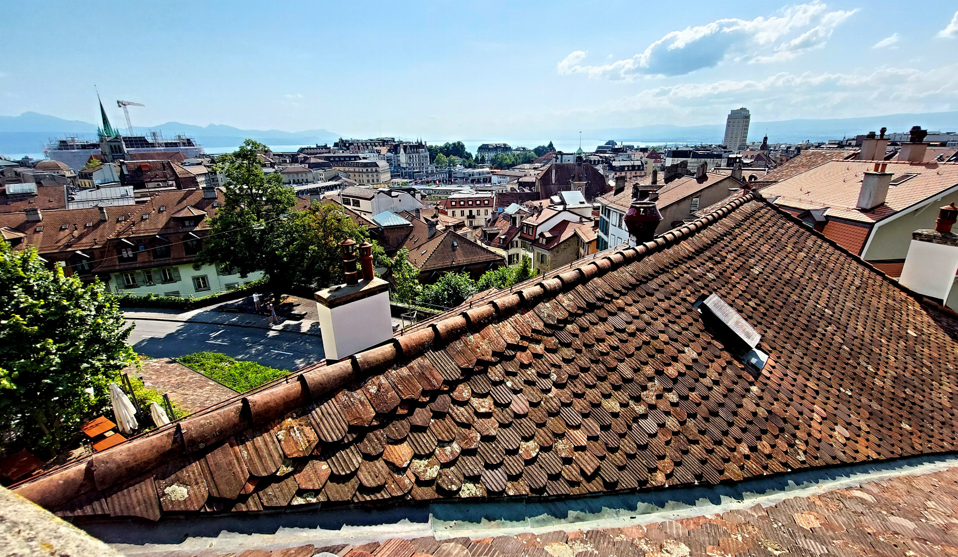 Pokud chcete vidět město v celku, nemusíte jezdit na žádný kopec kdesi za městem. Samo město je totiž takovým jedním velkým kopcem, vystavěné na obřím svahu. Dole u Jezera jsme ve výšce 372 m n. m., zatímco nejvyšší partie Lausanne se chlubí kótou 750 m n. m. i více! Ve městě proto pořád stoupáte nebo klesáte, pokud tedy neumíte chodit po vrstevnicích. Anebo můžete jezdit metrem! Ano, Lausanne má, jako jediné město ve Švýcarsku, metro – plně automatické, tedy nemá řidiče, a každou zastávku ohlašuje jiný zvukový efekt, třeba dusot koní nebo zvuk vodopádu, což je poměrně dobré vědět předem… Jedna ze dvou tras metra vás vyveze do čtvrti Epalinges, což je hodně nad 700 m n. m., takže v tomto případě metro supluje lanovku. Skvělá podívaná je z kopce Sauvabelin, na jehož vrcholku je i rozhledna (k níž ale musíte dojít pěšky). Určitě největší počet turistů se ovšem na historické Lausanne dívá z vyhlídky na Place de la Cathédrale, která je hned vedle monumentální katedrály Notre Dame ze 13. století.