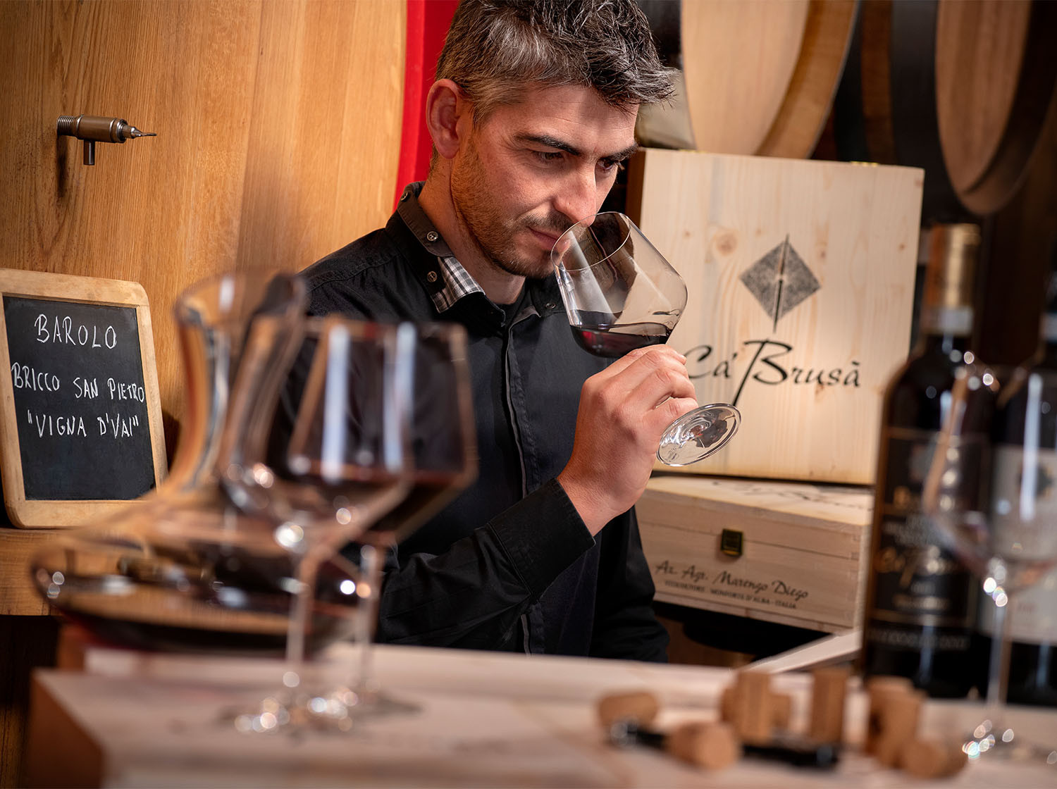 Piemontská vína patří ke světově nejuznávanějším lokalitám pro výrobu mimořádných vín, která mají dlouhou dobu zrání. Ca’ Brusà je rodinné vinařství, které existuje již po pět generací. Je zasazeno do krásné kopcovité krajiny, kde se vinice táhnou, kam až oko dohlédne.