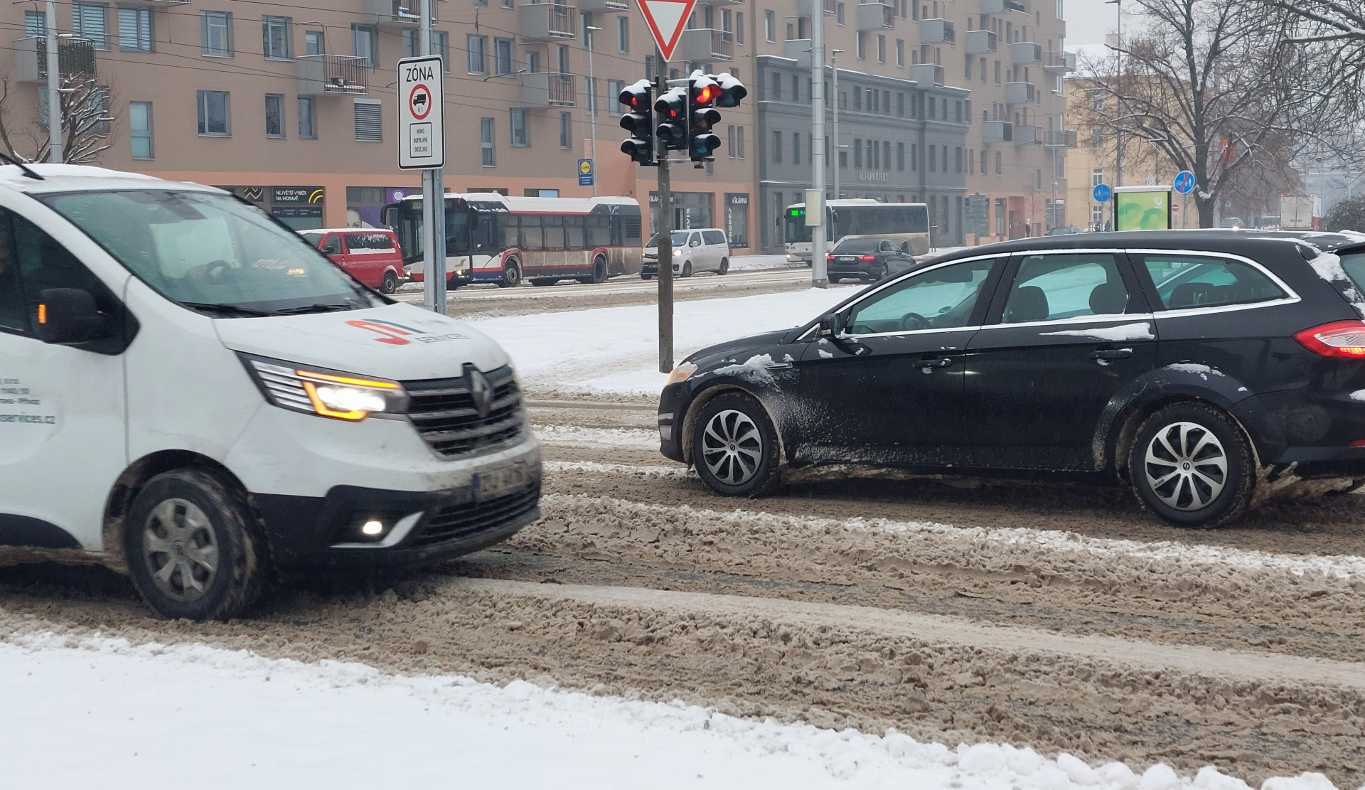 Olomoucký kraj pokryla během noci a rána vydatná nadílka nového sněhu. Ředitelství silnic a dálnic i Technické služby města Olomouce mají na silnicích svou techniku, přesto je ale doprava komplikovaná a na řadě míst vznikají zácpy. Hasiči a policie zasahují od rána také u několika dopravních nehod. Pod sněhem jsou i chodníky.